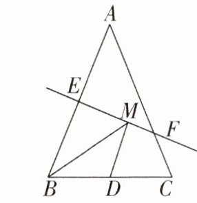 4 [2024陕西西安临潼区期中,中]如图,等腰$△ABC$底边BC的长为6 cm,面积是$18cm^{2}$,腰AB的垂直平分线EF交AC于点F,交AB于点E,若D为BC 边上的中点,M为线段EF上一个动点,则$△BDM$周长的最小值为____