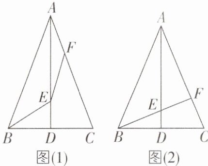 6 核心素养 几何直观 [较难]在$\triangle ABC$中,$AB = AC$,$D是BC$的中点,$E$,$F分别是边AD$,$AC$上的点.