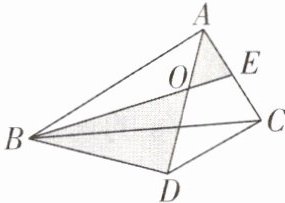 4 [2025 陕西西安校级期末,中]如图,$\triangle ABC$中,$AC = DC = 3$,$BD垂直∠BAC的平分线于D$,$E为AC$的中点,则图中两个阴影三角形($\triangle OBD与\triangle OAE$)的面积之差的最大值为______.