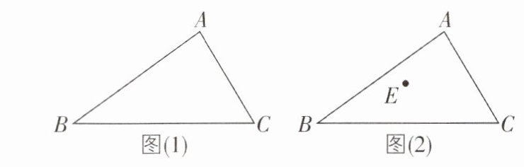 (2)假设在菜地中有一点 E,如图(2)所示,BC 上是否存在点 F,使折线 A - E - F 将△ABC 分为面积相等的两部分?若存在,请找出 F 点的位置,并说明理由.