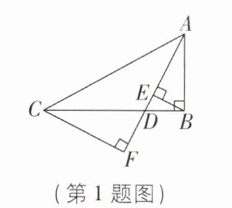 1 [2025 北京海淀区期中,中]如图,在直角三角形 ABC 中,∠ABC = 90°,点 D 沿 CB 自点 C 向点 B 运动(点 D 与点 C,B 不重合),作 BE⊥AD 于点 E,CF⊥AD 的延长线于点 F,在点 D 的运动过程中,BE + CF 的值逐渐(