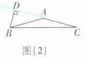 (1),连接AP,BP,PC。因为AB和AC的垂直平分线交于点P,所以PA = PB = PC,所以∠BAP = ∠ABP,∠PBC = ∠PCB,∠PAC = ∠ACP。因为∠BPC = 100°,所以∠PBC + ∠PCB = 180° - ∠BPC = 80°。因为∠BAC + ∠ABC + ∠ACB = 180°,所以∠ABP + ∠BAP + ∠ACP + ∠CAP = 180° - (∠PBC + ∠PCB) = 100°,所以2∠BAP + 2∠CAP = 100°,所以∠BAP + ∠CAP = 50°,所以∠BAC = 50°。当点P在△ABC外部时,如图