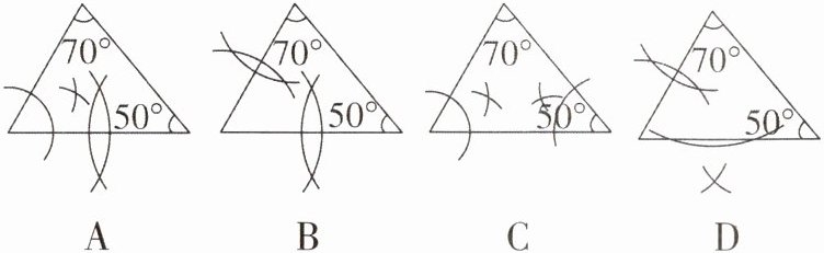 2 [2024吉林长春绿园区质检]小丽同学要找到到三角形三个顶点距离相等的点,根据下列各图中圆规作图的痕迹,可用直尺成功找到此点的是(