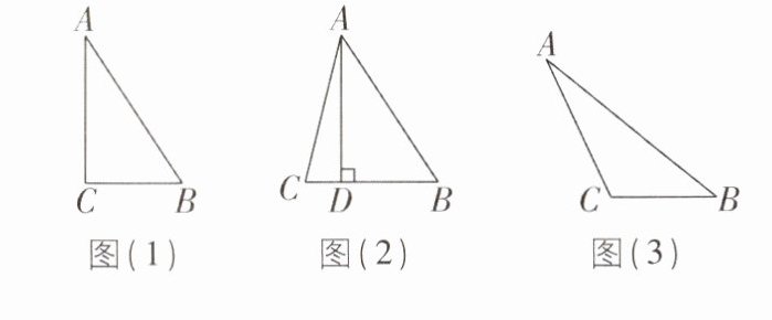 7[2025江苏南京期中]在$△ABC$中,$∠BAC和∠ABC$都是锐角,$BC= a,AC= b,AB= c$.如图(1),当$∠ACB= 90^{\circ }$时,$a^{2}+b^{2}= c^{2}$.