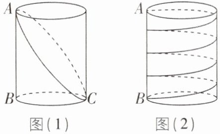 (3)如图(2),若将金属丝从点 B 绕四圈到达点 A,则所需金属丝最短长度是多少?