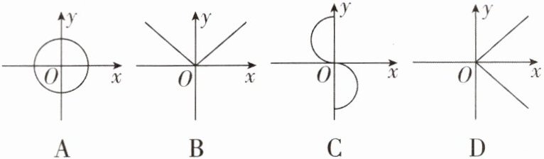 D 【解析】根据函数的定义可知,对于$x$的每一个值,$y$都有唯一的值与它对应,所以选项D 中$y$不是$x$的函数. 故选 D.
