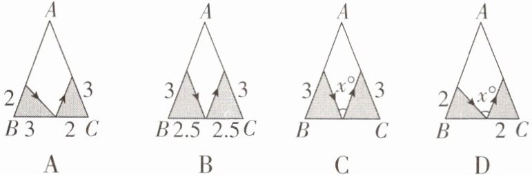 1 [中]如图,有一张三角形纸片 ABC,已知∠B= ∠C= x°,按下列方案用剪刀沿着箭头方向剪开,可能得不到全等三角形纸片的是( )