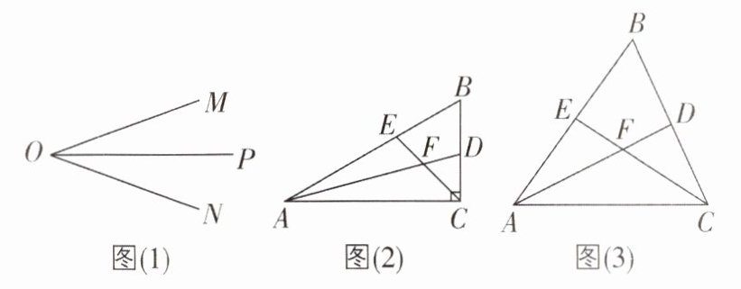 5 核心素养 模型观念 [较难]如图(1),OP 是∠MON 的平分线,请你利用该图形画一对以 OP 所在直线为对称轴的全等三角形,并写出添加的全等条件.