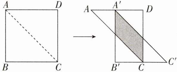 2 [2025 江苏徐州调研]如图,将边长为 15 的正方形 ABCD 沿其对角线 AC 剪开,再把△ABC 沿着 AD 方向平移,得到△A'B'C',当两个三角形重叠部分的面积为 56 时,它移动的距离 AA'等于 。