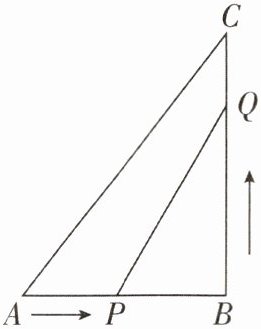 (2)设经过t s后,PQ的长度等于5 cm。由勾股定理得PQ² = BP² + BQ²,即25 = (5 - t)² + (2t)²,解得t₁ = 0,t₂ = 2,