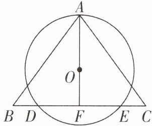 8 [2025 江苏宿迁期中]如图,在$\triangle ABC$中,AB= AC,点 D,E 在边 BC 上,BD= CE. 过 A,D,E 三点作$\odot O$,连接 AO 并延长,交 BC 于点 F.