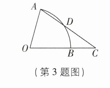 3 如图,在扇形 AOB 中,D 为$\overset{\frown }{AB}$上的点,连接 AD 并延长与 OB 的延长线交于点 C. 若 CD= OA,$∠O= 75^{\circ }$,则$∠A$的度数为( )