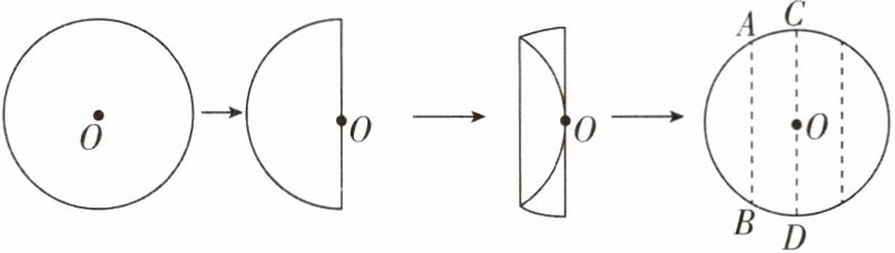 3 [2024江西赣州质检]把一张圆形纸片按如图所示方式折叠两次后展开,图中的虚线表示折痕,则$\overset{\frown }{AC}$的度数是( )