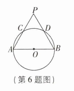 6 如图,已知AB是$\odot O$的直径,$PA= PB$,$\angle P= 60^{\circ}$,则弧CD所对的圆心角等于______度.