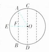 $60^{\circ}$或$300^{\circ}$ [解析]$\because \odot O$的一条弦AB把圆的周长分成$1:5$两部分,$\therefore$弦AB对应的圆心角的度数为$360^{\circ}×\frac{1}{1 + 5} = 60^{\circ}$,$\therefore$弦AB所对的劣弧的度数为$60^{\circ}$,弦AB所对的优弧的度数为$360^{\circ} - 60^{\circ} = 300^{\circ}$。故答案为$60^{\circ}$或$300^{\circ}$。思路分析:过D作$DE⊥AB$于E,求出$∠DOB = 60^{\circ}$,通过含$30^{\circ}$角的直角三角形的性质及勾股定理求出OE,DE的长度,再求出CE的长度,最后根据勾股定理求出DC的长度即可。易错警示:圆中一条弦所对的弧有两条,它们分别位于弦的两侧,本题容易忽略优弧而致错。