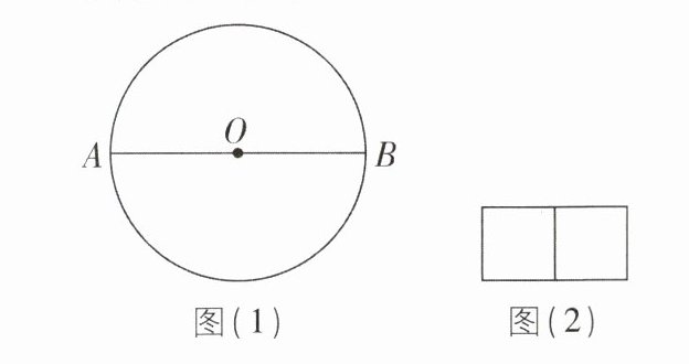 (2)如图(2),边长为 $ 1\ \text{cm} $ 的两个正方形并列在一起,则其最小覆盖圆的半径是______ $ \text{cm} $。