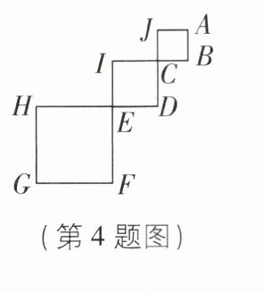 4 [较难]如图是一个含有 3 个正方形的相框,其中 $ \angle BCD = \angle DEF = 90^{\circ} $,$ AB = 2 $,$ CD = 3 $,$ EF = 5 $,将它镶嵌在一个圆形的金属框上,使 $ A $,$ G $,$ H $ 三点刚好在金属框上,则该金属框的半径是______。