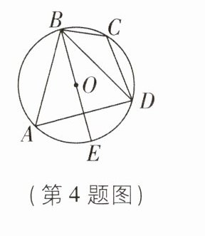 4如图,四边形ABCD是$\odot O$的内接四边形,BE是$\odot O$的直径,连接BD.若$∠BCD= 2∠BAD$,则$∠EBD$的度数是( )