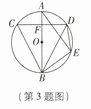 3 [中]如图,四边形 $BCDE$ 内接于 $\odot O$, $AB$ 是 $\odot O$ 的直径,满足 $AB \perp CD$ 于点 $F$, 连接 $AE$, $BD$. 若 $\angle ABC= \angle DBE$, $CF= 2AF= 4$, 则点 $E$ 到线段 $AB$ 的距离为______.