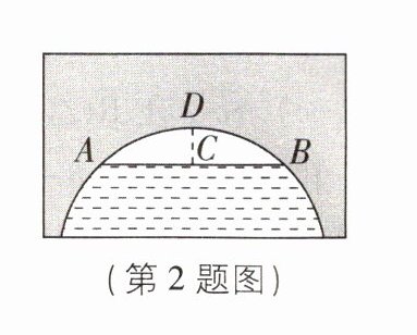 2 [2024 河南漯河质检,中]如图,一座石桥的主桥拱是圆弧形,某时刻测得水面宽度 $AB$ 为 6 米,拱高 $CD$ (弧的中点到水面的距离) 为 1 米,若水面下降 1 米,则此时水面的宽度为 ( )