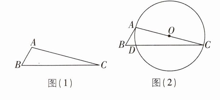 (2) 如图(2), $\angle B>45^{\circ}$, 以边 $AC$ 为直径作 $\odot O$, 交 $BC$ 于点 $D$, 若 $BD= 2$, $BC= 7$, 试求 $\odot O$ 的面积.