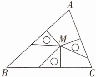 1[2025江苏常州调研]如图,将三块完全相同的等腰直角三角板的一个锐角顶点都放在点M处,再使其各有一条直角边恰好在△ABC的边上,此时点M是(