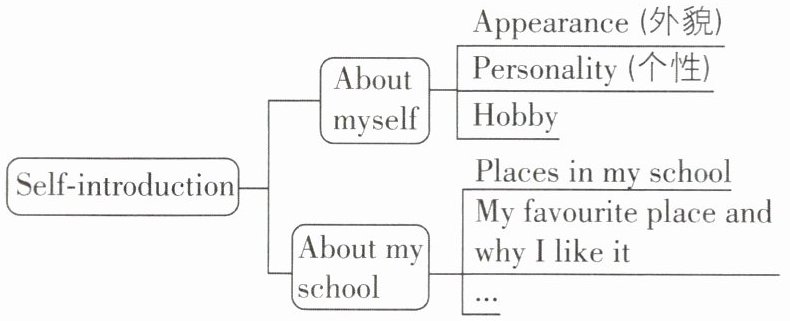 内容要点:自己的外貌、个性和爱好;学校的布局、自己最喜欢的地方等