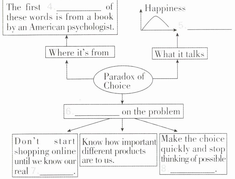 [2024 四川简阳期末] Now, people's life is full of choices. “I want to choose this. Wait! That one seems better than this one. I should make a decision after looking through all of them. ” As a result, people often spend much time deciding what to buy. In the end, they usually lose the happiness of getting new things and forget what's truly important.