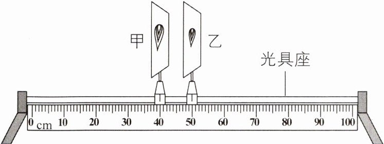 (6)若保持图乙中透镜位置不动,将蜡烛移至45 cm刻度线处,无论怎样移动光屏,始终承接不到烛焰清晰的像。此时应在凸透镜