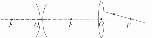 [解析]过凸透镜焦点的光线经凸透镜折射后折射光线平行于凸透镜的主光轴,平行于凹透镜主光轴的光线经凹透镜折射后,折射光线的反向延长线过凹透镜的虚焦点。