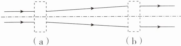6 [2025河北沧州期中]如图,题中已画出一束平行光通过两个透镜后的光路,请在(a)、(b)对应的虚线框中分别填上适当类型的透镜。