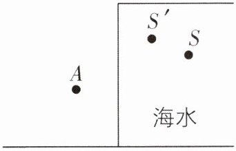 3 [中]星语同学在参观海洋馆时,看到在展箱内$S'$点有一条鱼。图中A点表示星语的眼睛,S点是鱼的实际位置,请在图中画出星语看到鱼的光路图。