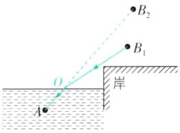 [解析]连接A、B₂两点(空气中用虚线,水中用实线),与水面相交于O点,则交点O为入射点;连接B₁O为入射光线,OA为折射光线。