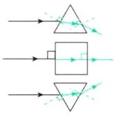 2 [2024广东深圳期末,中]如图,上、下是两个相同的玻璃三棱镜,中间是一块玻璃砖,请大致画出三条光线的折射光线。