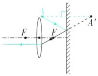 8 [2024山东德州中考,中]如图所示,$A'$是点光源A在平面镜中所成的像,A发出的一条光线经平面镜反射后射向凸透镜,反射光线恰好过凸透镜的焦点,请画出: