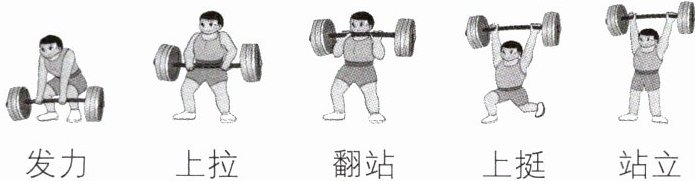 1 [2025 江苏扬州调研]如图为举重运动员做挺举连续动作时的几个状态图,下列说法中正确的是(