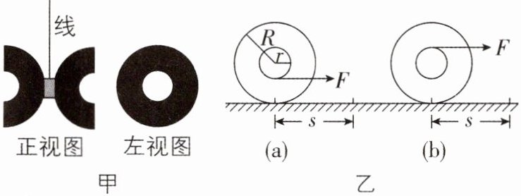 5 核心素养科学思维 [中]悠悠球是世界上最古老的玩具之一,它由轮与轴(含绕轴上的线)两部分组成(如图甲)。一悠悠球,轮半径为$R$,轴半径为$r$,线为细线,如图乙是玩悠悠球的两种不同方式(轴与轮无相对运动,线已有一半绕在轴上),小科用拉力$F使球在水平方向匀速运动距离s$,则下列说法正确的是(