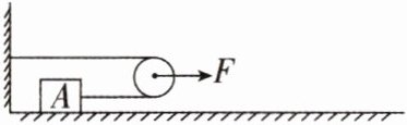 1 [2025 河南信阳质检,中]如图所示,用$F = 50N$的水平拉力,通过一个动滑轮,使重为$200N的物体A水平向右匀速移动了12m$,在这个过程中(