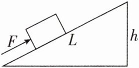 5[2023湖北荆州中考,中]以“‘荆歌’铁马,奔向未来”为主题的2023荆州马拉松3月26日在荆州体育中心鸣枪起跑。在开赛场地建设过程中,工人利用长度L= 3m的斜面把质量为240kg的重物匀速推到h= 1m高处,如图所示,工人所用推力F= 1000N。g取10N/kg。