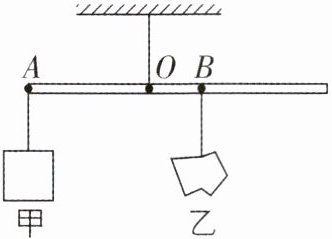 A 【解析】根据杠杆的平衡条件可知$G_{甲}×OA=G_{乙}×OB$,已知OA=2OB,则$G_{甲}:G_{乙}=OB:OA=1:2$。