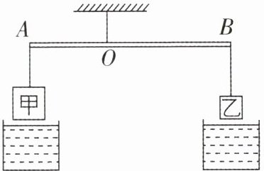 4[2025河北邢台期末,偏难]材料相同的甲、乙两个实心物体分别挂在杠杆A、B两端,O为支点($OA<OB$),如图所示,杠杆处于水平平衡状态。如果将甲、乙两物体(密度比水大,不溶于水)浸没于水中,杠杆将会(