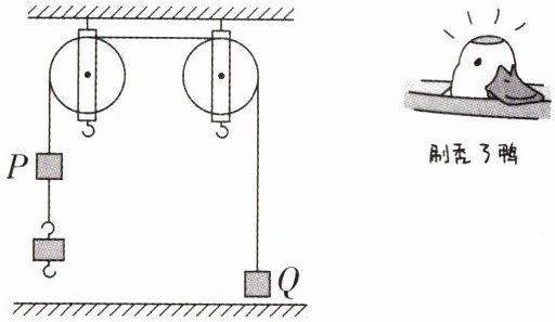 【解析】观察图可知,滑轮固定不动,是定滑轮,不能省力,可以改变力的方向;左侧物块P下方连接有一个重为1N的钩码,上端通过细线绕过轻质定滑轮连接一个与物块P质量相同的物块Q,将它们由静止释放。细线重力及各处的摩擦均不计,钩码落地后不弹起。在钩码落地前P、Q间细线拉力F的范围:2~3N,在钩码落地后物块P未落地前P、Q间细线拉力$F=2N$。