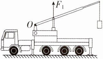 9[2024四川宜宾中考,中]如图是宜宾港一起重机正在吊起货物的情景,请在图中画出此时动力$F_{1}的力臂l_{1}和阻力F_{2}$的示意图。
