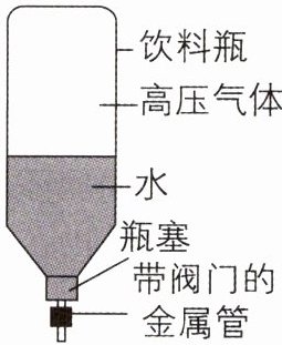 7 核心素养科学思维 [2025 河南驻马店期中,中]小明用饮料瓶制作水火箭,先在瓶里装适量水,然后将带有阀门的金属管插入瓶塞,旋紧瓶塞后用打气筒往瓶里打足气(如图),打开阀门后,水从金属管向下喷出,水火箭向上飞向空中,下列分析正确的是 (