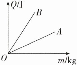 4 [2024 江苏南京期末,中]如图是 A、B 两种燃料完全燃烧释放的热量 Q 与各自质量 m 的关系图,从图中可以看出 A 燃料的热值____(填“大于”“小于”或“等于”)B 燃料的热值。在标准大气压下,若 B 燃料的热值为$7×10^{6}J/kg$,则 0.7 kg 的 B 燃料完全燃烧释放的热量为____J。