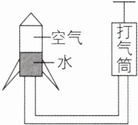4新素材[2025江苏扬州期末,中]2025年4月24日是第十个“中国航天日”,今年的“中国航天日”以“海上生明月,九天揽星河”为主题。某学校飞天社团的同学制作了水火箭,如图是水火箭的简易原理图。使用打气筒向水火箭内不断打气,当内部气体压强增大到一定程度时,会使水从水火箭中向下喷出,从而使水火箭升空。结合材料,你认为以下说法错误的是(