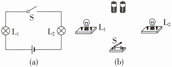 5[中]如图所示,按图(a)电路图连接图(b)的实物图。