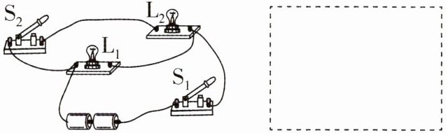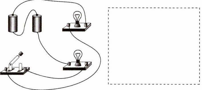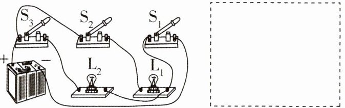 1[中]根据如图所示的实物连接图,在虚线框内画出对应的电路图。(要求连线要横平竖直,尽量使电路图简洁美观)