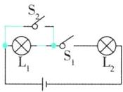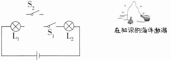 【解析】由题意知,当S₁闭合时,红灯L₁、绿灯L₂都发光;将S₂闭合时,红灯L₁熄灭,绿灯L₂仍发光,说明S₂和L₁并联,只将安全带插入插口时,两灯都不发光,说明S₂与L₁并联后与S₁串联。