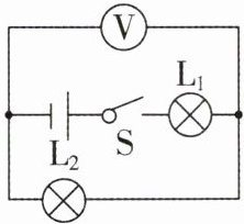 4[2024四川达州中考改编]如图所示电路,闭合开关后,整个电路正常工作。其中一盏灯突然熄灭,另一盏灯仍然发光,电压表示数变大,则该电路可能发生的故障为(